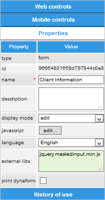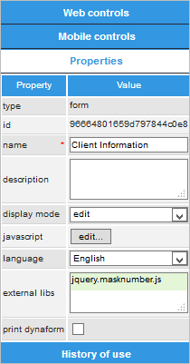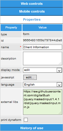 jquery.maskedinput.min.jsto the Dynaform's external libs property, as shown in the image below: