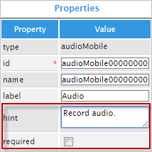 Hint Used to show help when the field is rendered. It is shown when the pointer of the mouse is hovered over the ? icon.