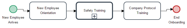 A sub-process is a separate process that is embedded in another process. The ProcessMaker engine supports the execution of sub-processes that are included in the design of the process. This element is shown in its collapsed state, which is represented by the + marker, and the process it will execute must be configured inside its properties. ProcessMaker does NOT support expanding the sub-process to show the details of the process and it can only be edited by opening it as a separate process.