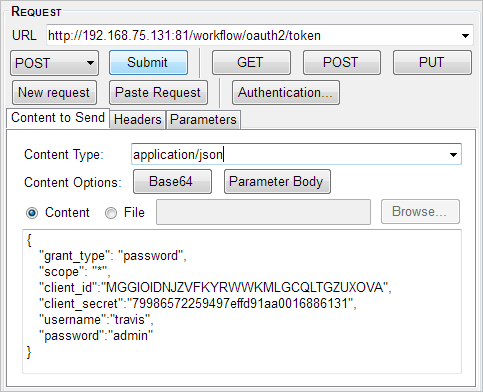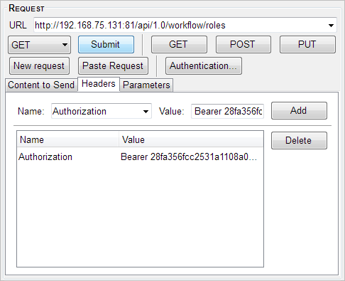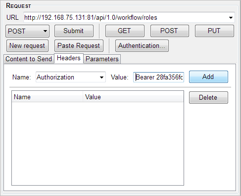 To make another request, click on New Request and complete the fields using the endpoint's information. For example, to make a POST request to create a new role, select the POST method, and place the endpoint URL and the request body in JSON format into the Content box. Finally, click on Submit.