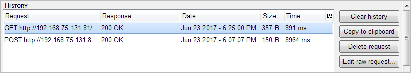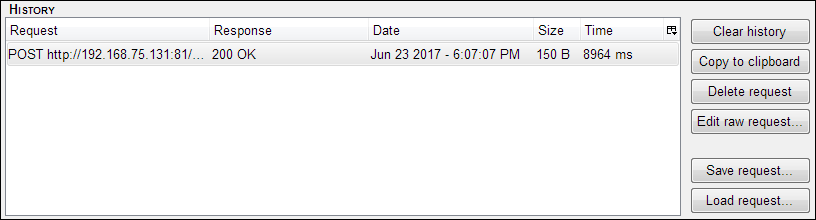 The request may take a few seconds. Once completed, the request will be listed in the History box.