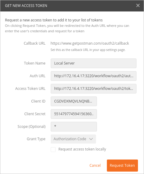 - Request Access Token Locally: If your OAuth2 provider is not publicly accessible (hosted locally or on your intranet), make sure the Request Access Token Locally option is checked.