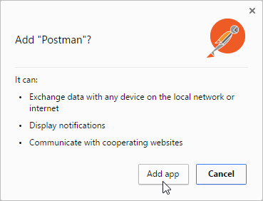 A window will be displayed asking for permission to add the extension. Click on the Add app button.