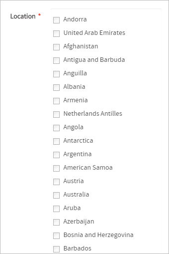 Note: In the image above, the full number of countries is not shown because it is too long to show in one image, but when testing the example the complete list will be shown.