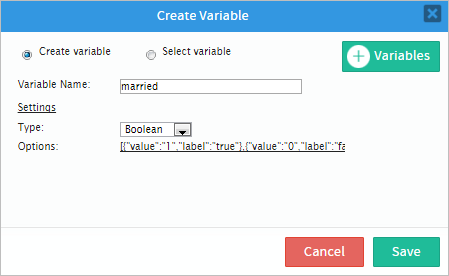 After adding the control the Create Variable window will appear. Create a variable named "married" and configure the settings as seen in the image below.