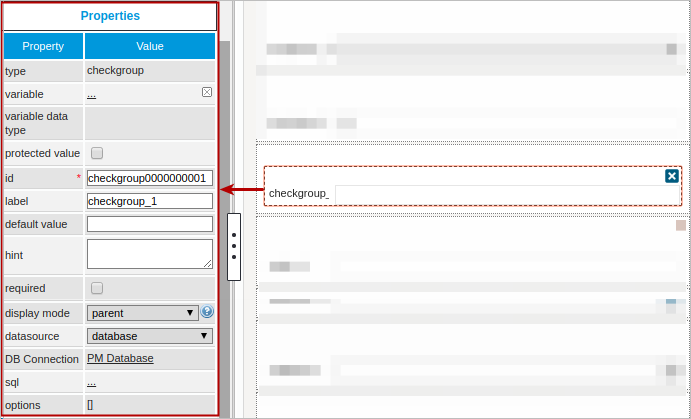 Checkboxes/Checkgroups in ProcessMaker 3 have the following field components: