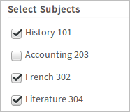 For example, the following trigger code checks whether the user selected an option with the label "History 101" or "Literature 304" in the "selectSubjects" checkgroup. If so, then the key of the selected option is added to an array variable named "languageRequirements".