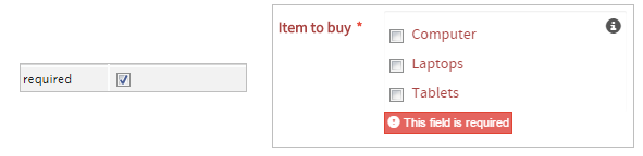 Next is the required property. When/if the required property is checked, a red asterisk will appear next to the control field, which means that an option must be selected or an error message will appear, as observed in the image below.