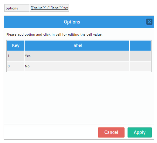 Observe that for this example the options property already has values, because when the variable was created it was boolean and therefore its values were added directly from the variable. For more information about the option property read this documentation.