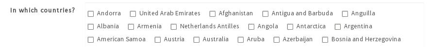 For example, the following checkgroup with the ID "selectCountries" is used to select from a list of countries: