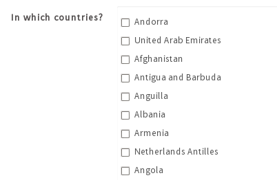 | Default value | The value saved to the control's variable when the end user does not mark an option. To set more than one option in this control use a pipe. For example, to define that "Bolivia", "Argentina" and "Venezuela" should be the default countries, set “BO|AR|VE” as the default value. Take a look at this documentation to learn how checkgroups work with default values. |