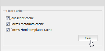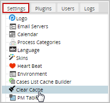 Note: From version 3.0.1.8. on, users must have the PM_SETUP_CLEAR_CACHE permission assigned to their role to access the ADMIN > Settings > Clear Cache option.