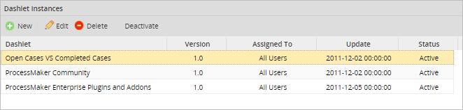 Click on New to create a new Dashlet Instance. The following window will be displayed to define the new Dashlet: