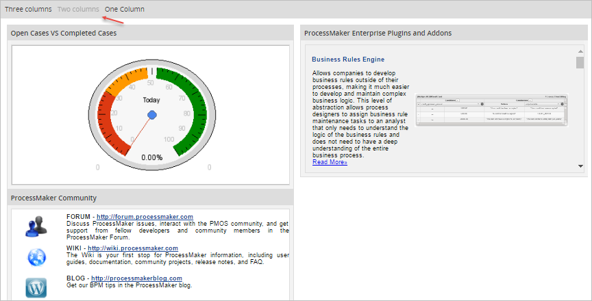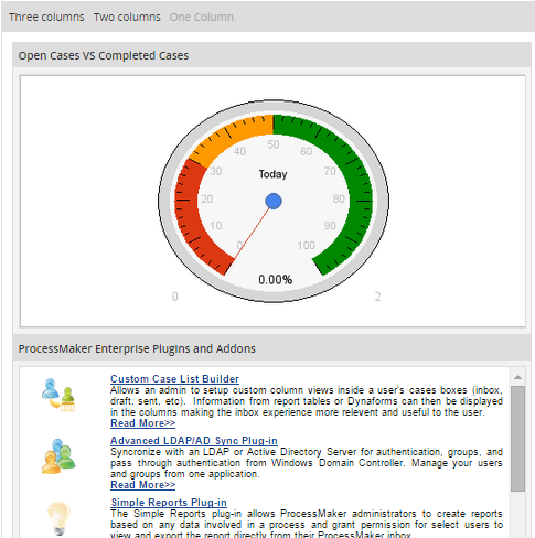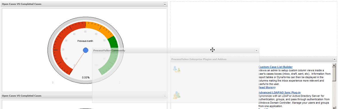 On previous version of ProcessMaker when a Dashlet was moved its place was not saved. From this version if a dashboard is moved and users switch tabs and/or logout and then return to the dashboards its place and changes will be saved. This position will be configured by user.
