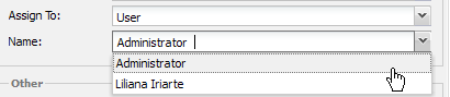 - User: An individual user can be assigned to see the Dashboard. By selecting this option, a list of the available users for the current process will be displayed: