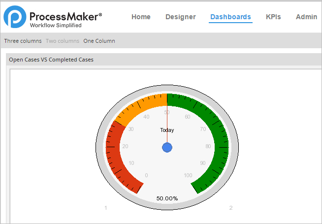 The ProcessMaker dashboard provides realtime monitoring of the efficiency and productivity of processes and users executing those processes. Managers and supervisors can use the dashboard to check up on the productivity of employees and measure how well departments are functioning. Dashboards are essential for gauging the effectiveness of a process and figuring out to improve it in the future. One of the goals of good Business Process Management (BPM) is continuous process improvement, which can only be achieved through effective measuring and monitoring.