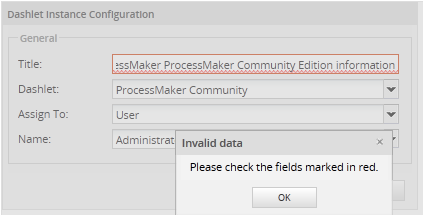 - If more than 201 characters are introduced, the field will be highlighted in red and if trying to save it the following message will display: