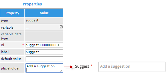 | Available in Controls: Text and TextArea, Dropdown, Checkbox, Checkgroup, Radio (group), Suggest, Hidden, Link |