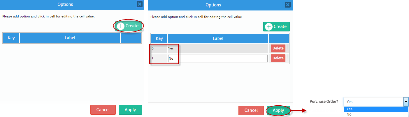 For example, when there is a dropdown control and the values have not been assigned in code, click on Options to populate the dropdown. In this case, this dropdown will be populated by a Yes and No option because it asks the question to purchase an order. Look at the image below for guidance.