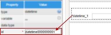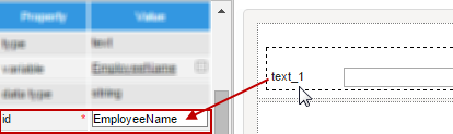 It is required that all controls have a unique identifier. That identifier is set in the ID property. By default, the ID of all the controls has the ControlTypexxxxxxxxxx format where xxxxxxxxxx represents the correlative number of the control inside the designer. For example, when adding the first text control to the designer, the ID set will be Text0000000001