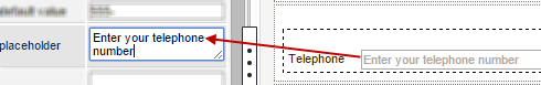 This property is a text set by the designer as a reference of what should be input inside the field. This text is shown in a lighter color inside the field and does not act as an input text if the form is submitted and its value is not completed. It just acts as a hint.