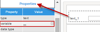 To relate a variable in the project to a control added to the Dynaform, go to the Variable property of the control.