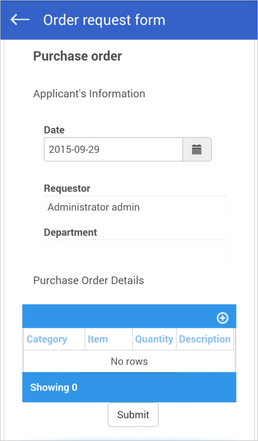 Note: Take into account that the preview shown in the web browser is different from the ProcessMaker Mobile Application for Android and IOS that render the Dynaform controls modified due to compatibility issues with webkits and usability in a reduced space.
