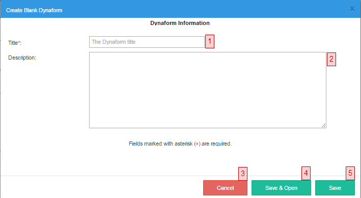 A modal window will be displayed containing the options to create a Dynaform from scratch.