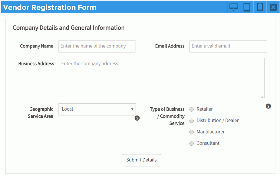 - "Geographic Service Area" -> Dropdown