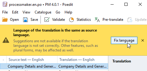 - 4. Click Fix language.