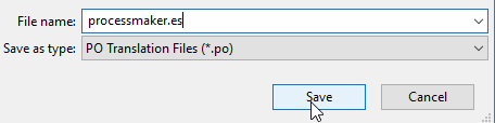 - 16. Once done, click Save using the PO Translation File (*.po) file type using the naming style suggested earlier or with the file name according to your needs.