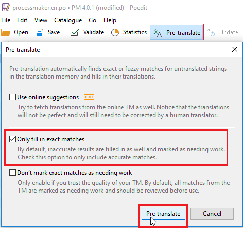 - 10. Click Pre-translate.
