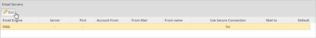When clicked a new window named "Edit Email Server" will appear in which two options for the "Email Engine" field is presented, they are the following: