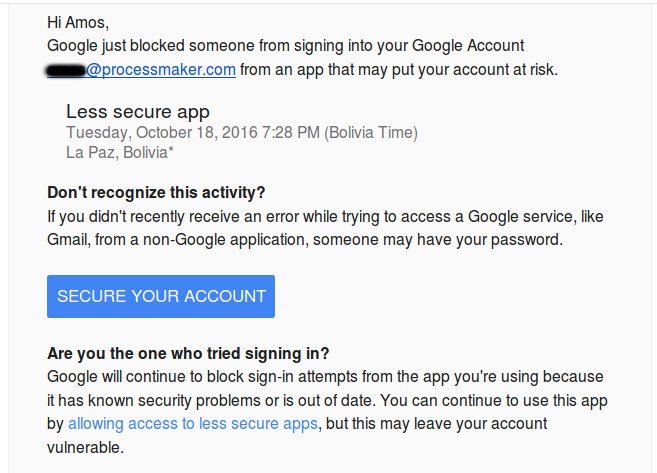 Click on the allowing access to less secure apps link at the bottom of the email. It will open a new tab or window to configure Less secure apps. In the Access for less secure apps radio button, select the option Turn on.