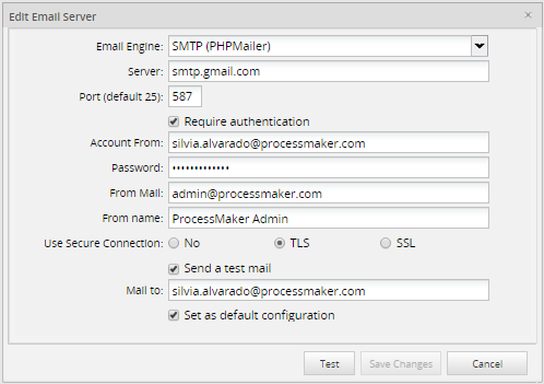 ProcessMaker can be configured to send out emails to keep its users apprised of new cases in their Inbox and notify them at specified times while running cases. This page will explain the settings to configure the email servers within ProcessMaker.