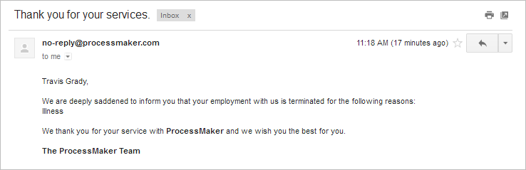 Once the Employee Offboarding Dynaform is submitted, the case will be routed into two cases: one assigned to IT Help Desk and one assigned to the Administration department.