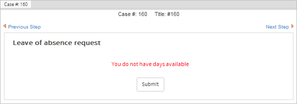 In the case the employee has no available leave, either paid or unpaid, the following Dynaform will be displayed and the case will be finished.