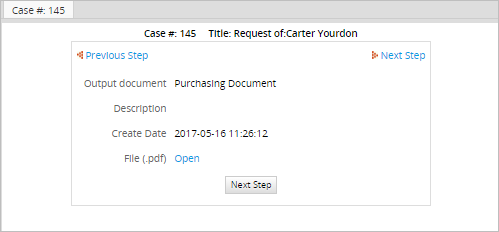 At this point, the case is paused while waiting for a response from all the suppliers. Once all suppliers send their quotes, the case will be unpaused and listed in the inbox of an employee belonging to the manager group. In this example, the next user is Aaron.