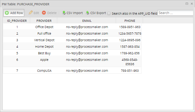 Also, after submitting the form, the data will be saved inside the PM table PURCHASE_GRID_CHILD where the details about all quotes are stored.