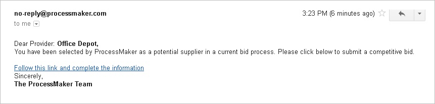 Each provider must provide the information required by clicking the link in the email. Once the link is clicked, a form will be displayed asking the provider for a bid price, comment and the quote for the item.