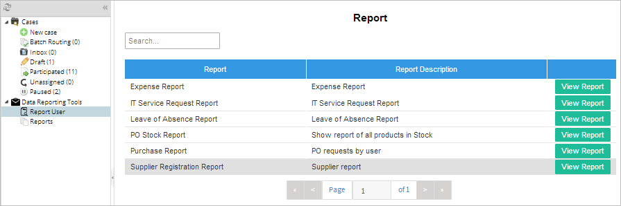 The Supplier Registration report shows all requests that have been filled in. This report is generated using ProcessMaker's Data Reporting Tools plugin.