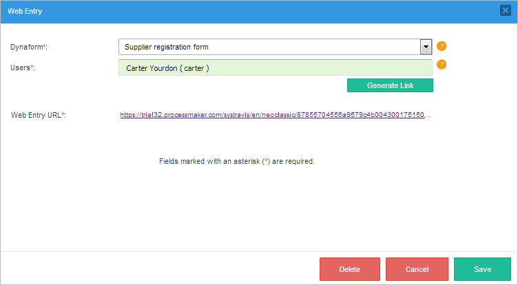 This process is initiated when external suppliers send a request to be registered in the Supplier database of your company through a web entry.