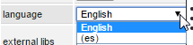 This property allows the selection of the language the form will be rendered when running a case. All Dynaforms include the "English" language by default. Nevertheless, if more languages have been uploaded to the Dynaform, this dropdown will list all of them.