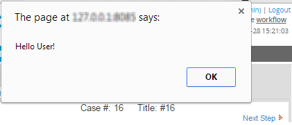 Save the code inserted by clicking on "Save" at the lower part of the editor. When the Dynaform opens while running a case, this message is shown: