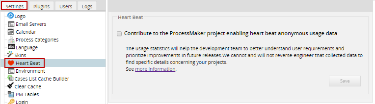 Note: Take into consideration that from version 3.0.1.8. on, users must have the PM_SETUP_HEART_BEAT permission assigned to their role to access the ADMIN > Settings > Heart Beat option.