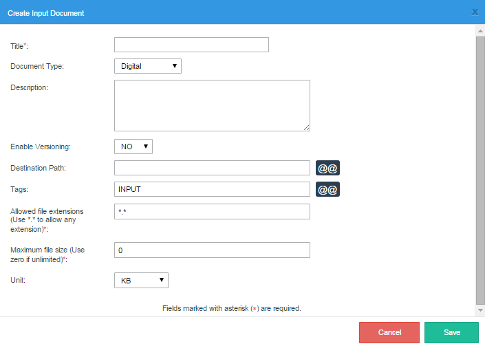 - Description: Enter a description of the input document, which will help the user better understand its purpose and what type of document should be submitted.