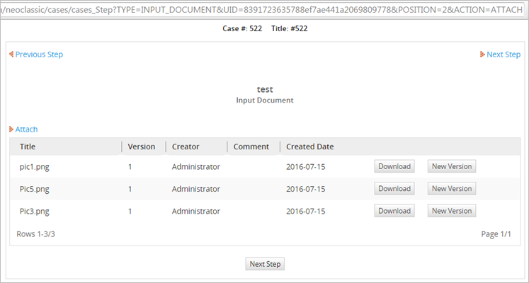 An input document (and its list of files) that has been assigned as a step in a task can be attached and reviewed with the following URL. Remember that this URL only works with the current task of the current case, as long as the currently logged-in user has the proper privileges to open the case.