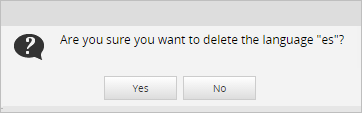 A message box will appear after clicking on the "Remove" option, confirm the deletion of the language by clicking on the "Yes" button or go back to the "Language" screen by clicking on the "No" option.