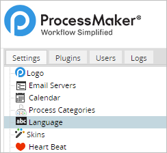 After downloading the translation file, then login to ProcessMaker as the "admin" user (or any user with the PM_SETUP_ADVANCE permission in their role). Go to Admin > Settings > Language.