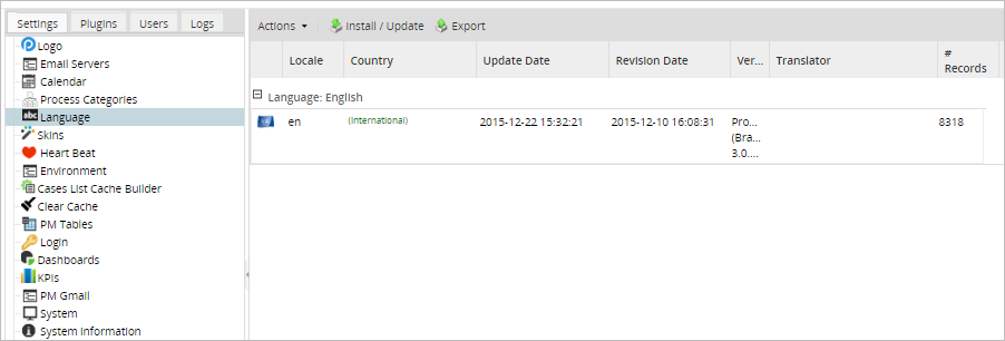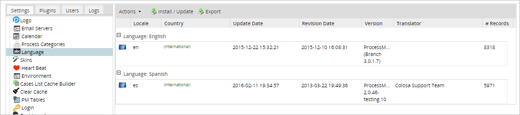 Note: To add a new translation to ProcessMaker or update an existing translation, see Translating ProcessMaker.